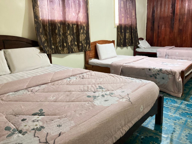 1 Master Room (Queen Bed + Toilet) + 1 Connecting Rooms (Queen Bed & Double Decker + Toilet ) + 1 Family Room (1 Queen Bed & 2 Single Beds) + 1 Standard Room